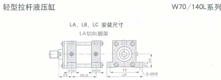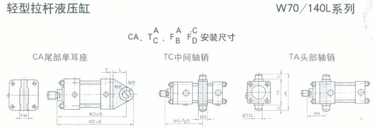 1、轻型拉杆液压缸W70/140L系列